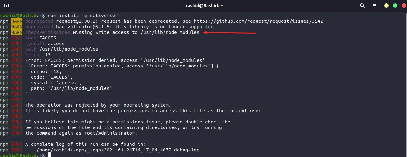 From that definition based on our code above we are going to change the owner of our folder ~/.npm which for sure the root user is applied. The first way is to change the owner of the node_modules/ folder, which must be owned by user “root” by default. Missing write access in mac to /usr/local/lib/node_modules.